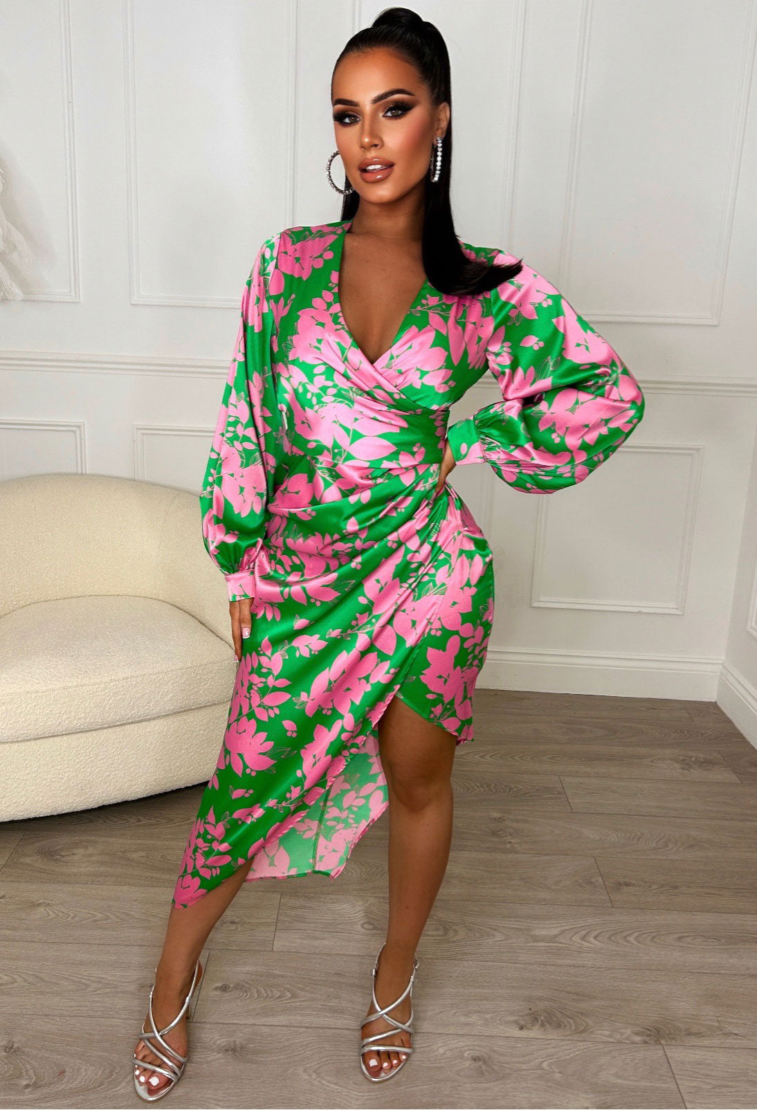 Chasing Romance Green Long Sleeve Ruched Midi Dress