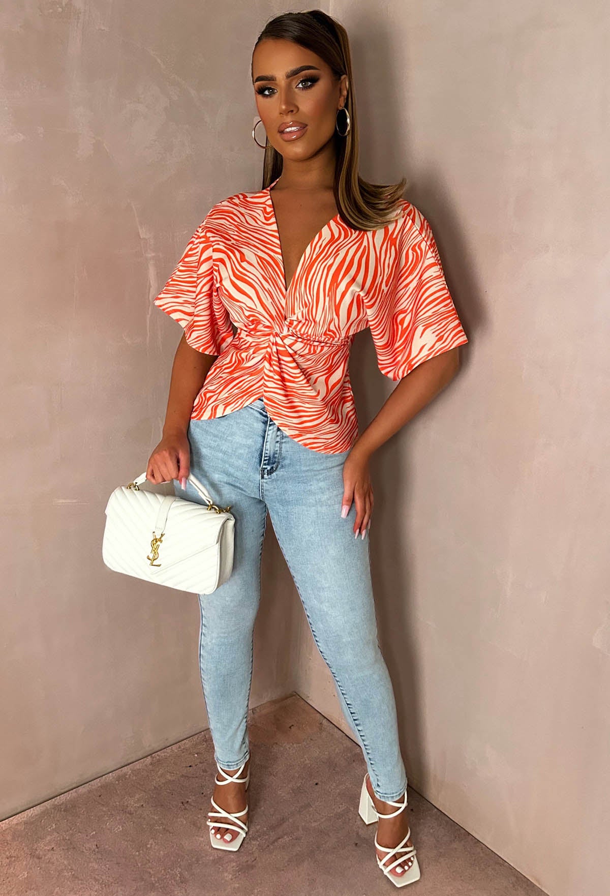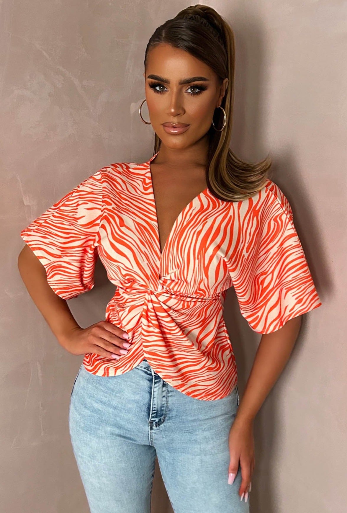 Best Believe It Coral Wrap Front Frill Sleeve Mini Dress