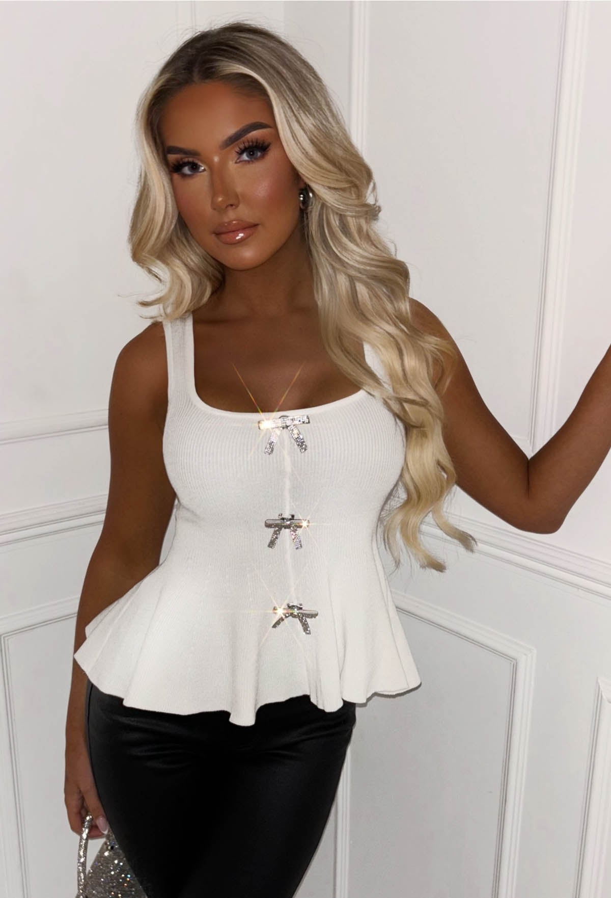 Outfit Check Cream Contrast Knitted Mini Skirt Co-Ord