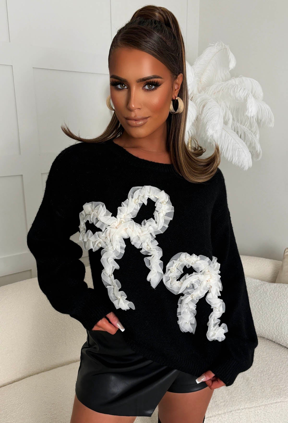 Meet Me Later Black Frill Sleeve Gold Button Jumper