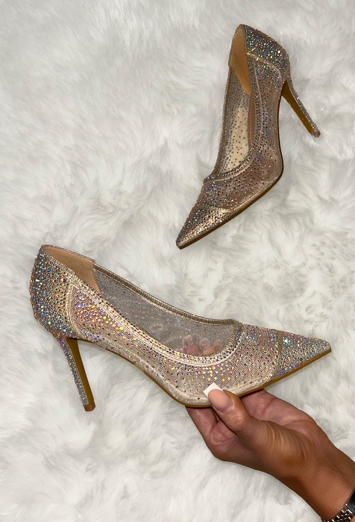 Eyecatcher Nude Diamante High Neck Long Sleeve Dress