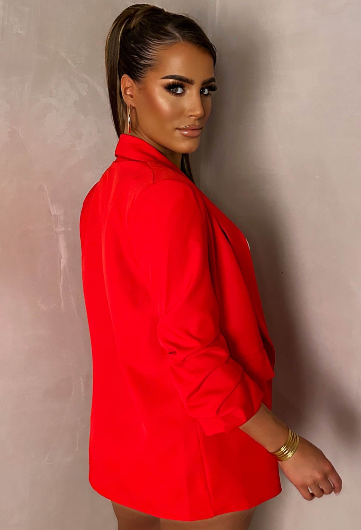 Always Iconic Red Shawl Ruched Sleeve Blazer