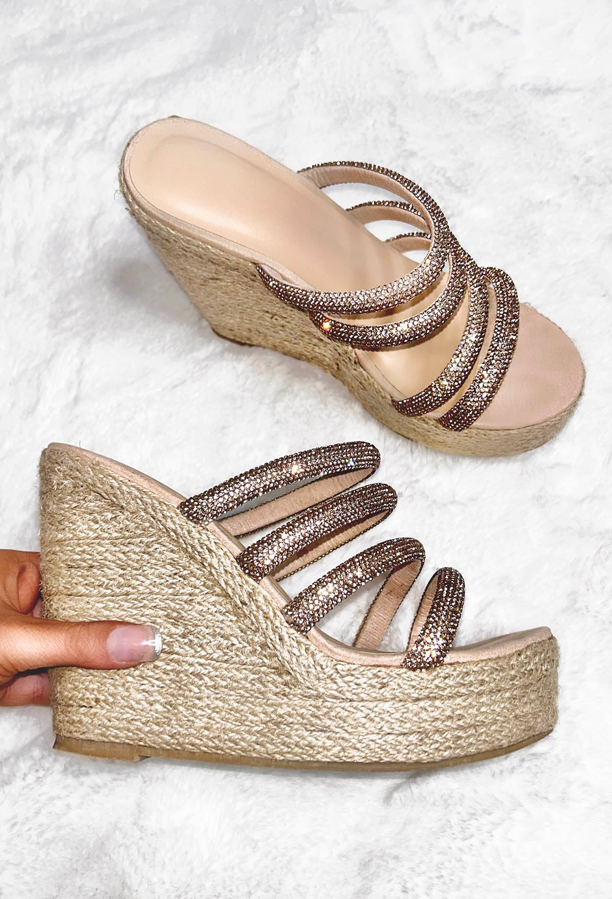 Beach Bliss Rose Gold Diamante Mule Wedges