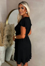 Best Believe It Black Wrap Front Frill Sleeve Mini Dress