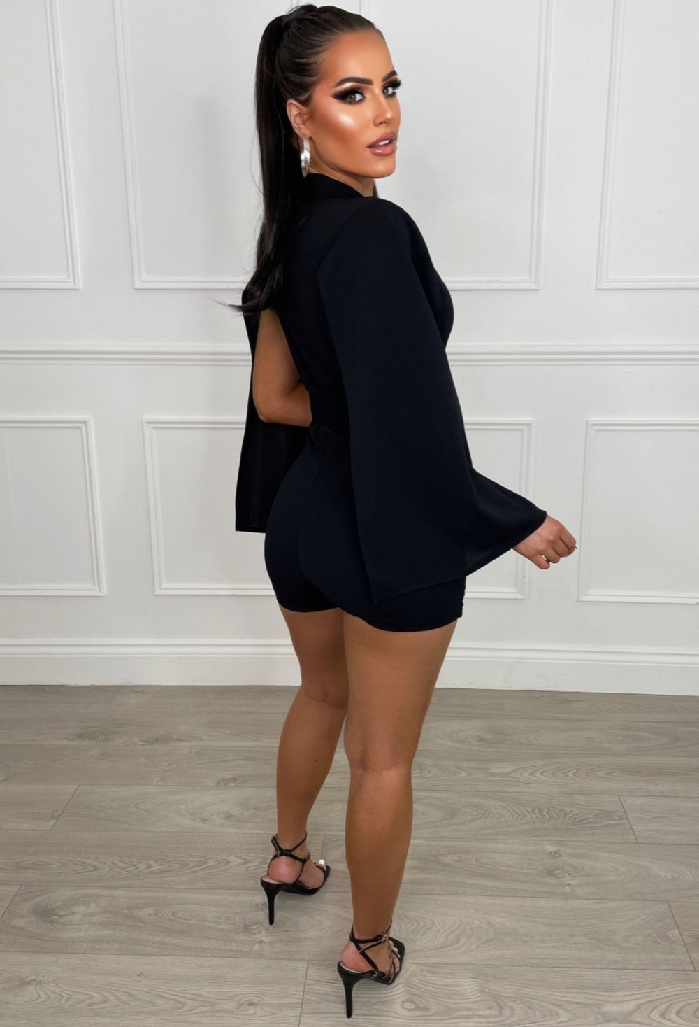Bold Moves Black Drape Sleeve Belted Playsuit