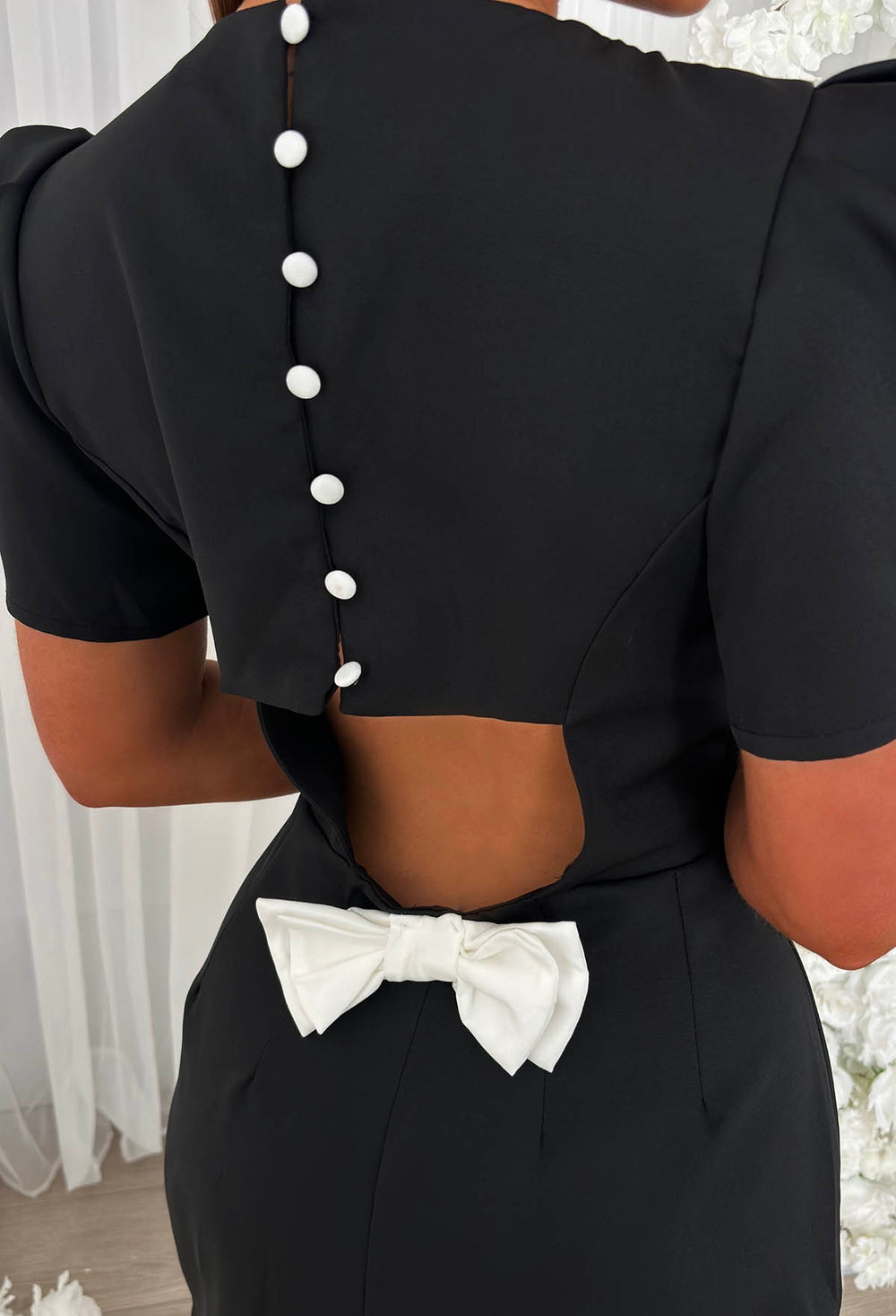 Be the essence of chic in our Buttoned Beauty Black Mini Dress. Featuring pretty puff shoulders and a button back with a cute bow detail. Whether for a night out or a special occasion, this mini dress will elevate your style!