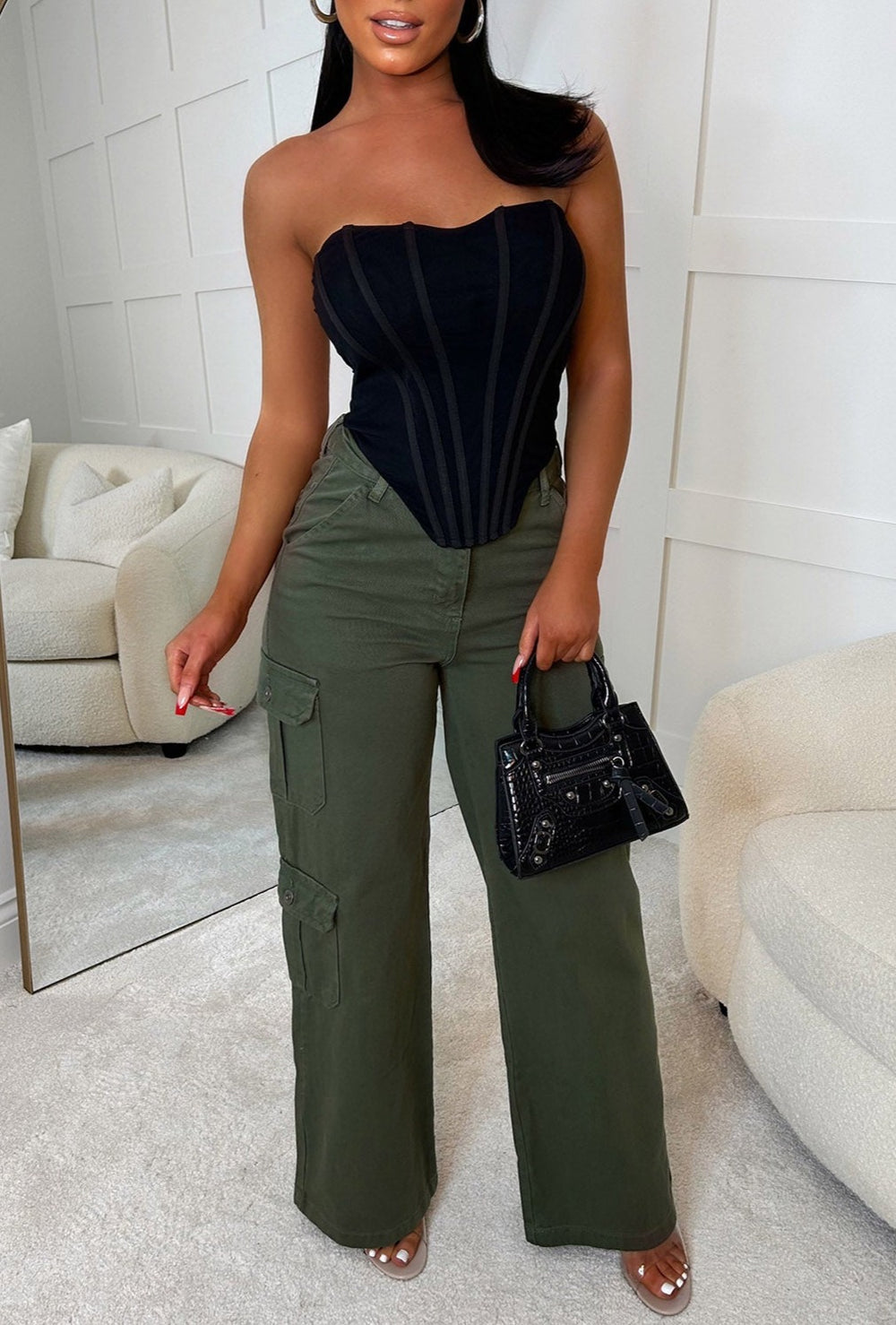 Make a statement in these khaki cargo wide leg stretch trousers! These cargos have been designed to offer maximum comfort and feature cargo pockets for a stylishly laidback look.