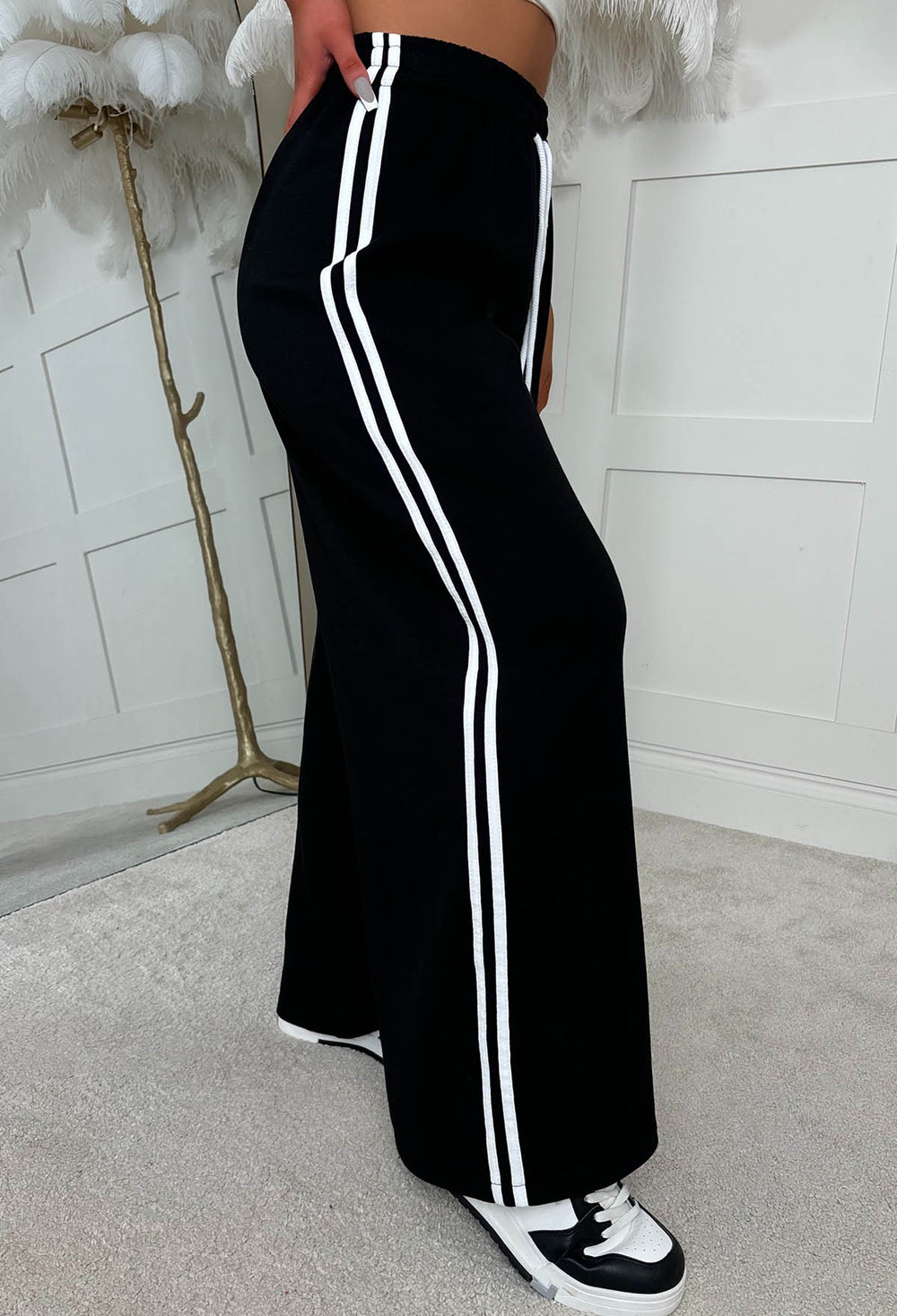 Casual Feelings Black Side Stripe Wide Leg Joggers