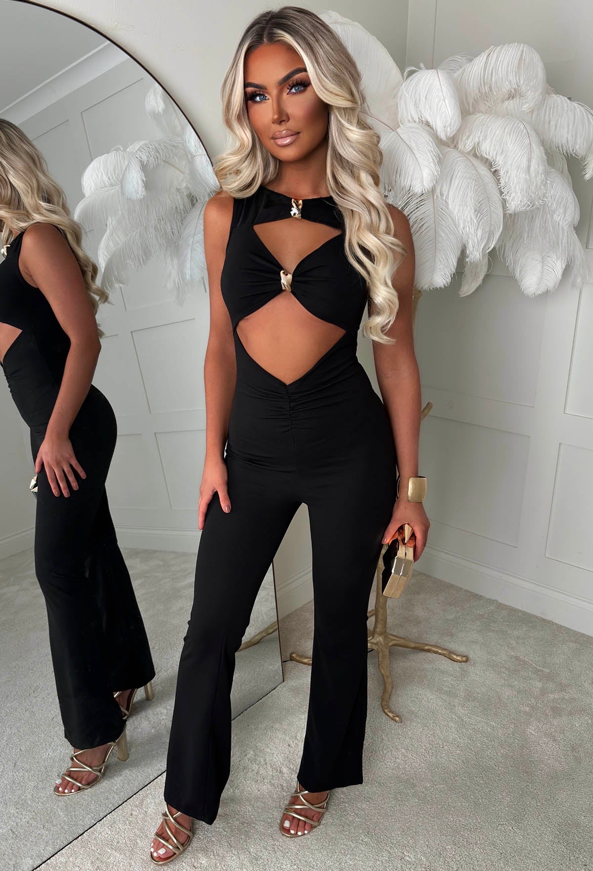 Clio Black Buckle Detail Cutout Jumpsuit