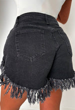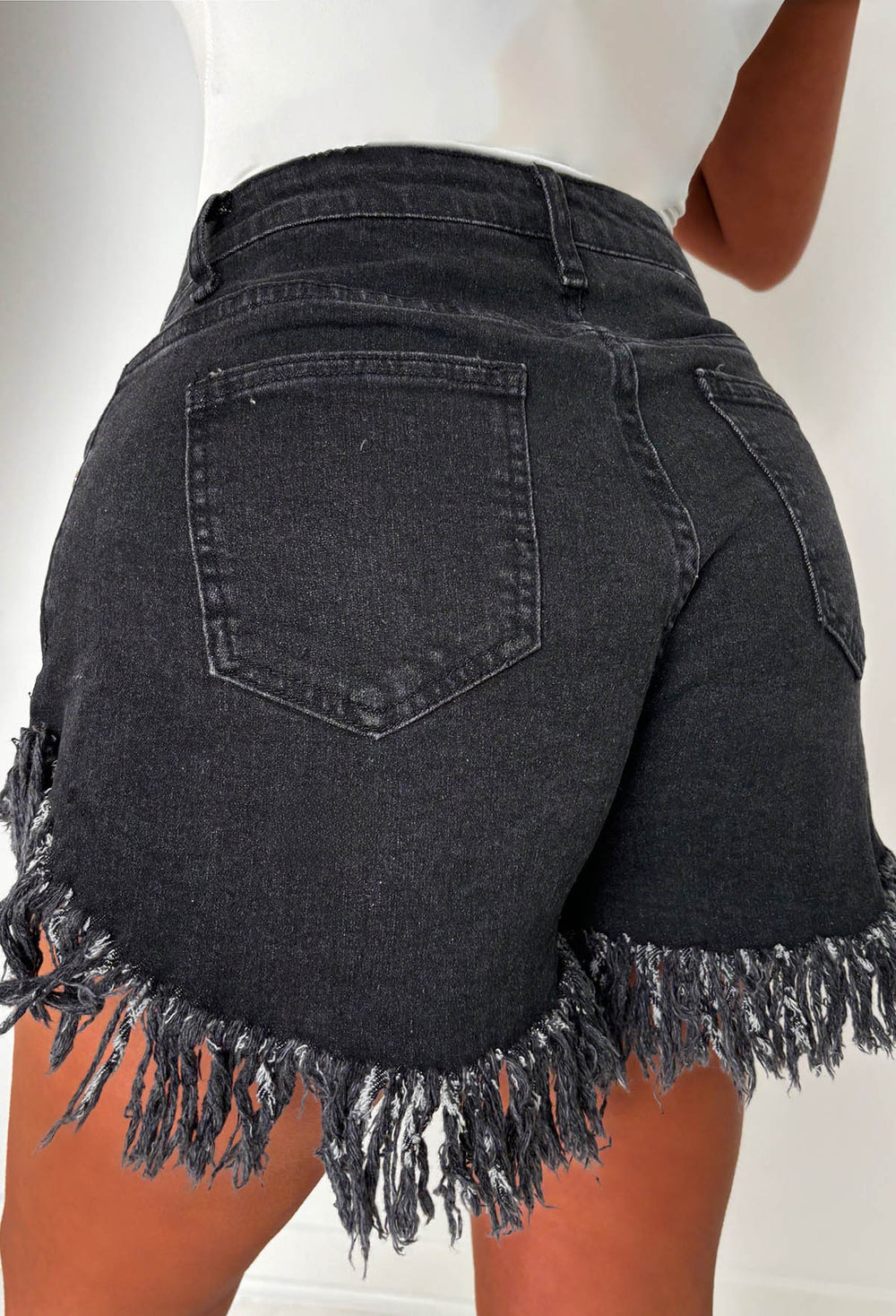 Frayed & Frantic Black Frayed Cut Off Stretch Denim Shorts