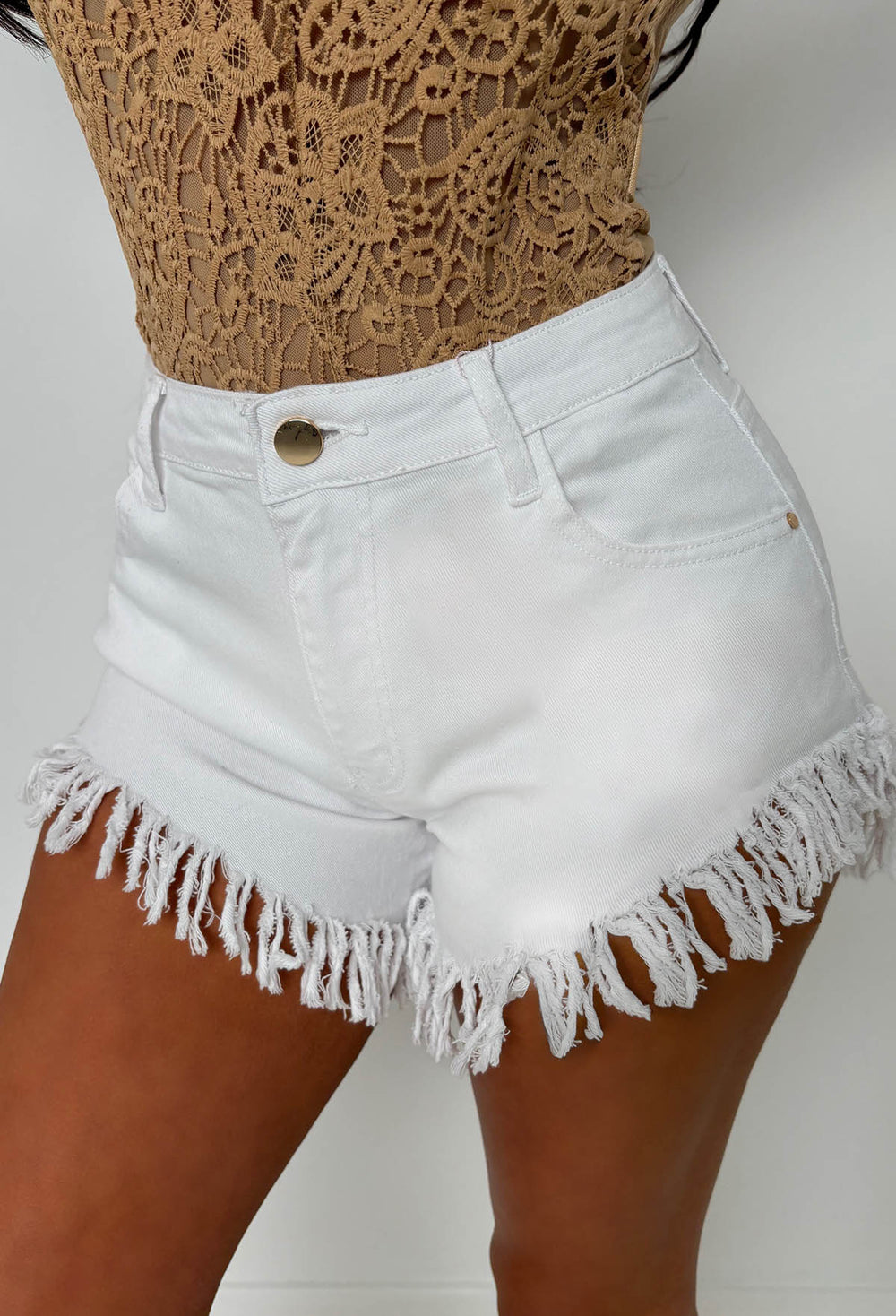 Frayed & Frantic White Stretch Frayed Cut Off Denim Shorts