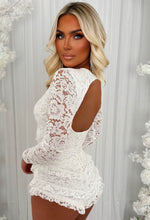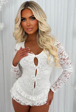 Get ready to be the center of attention in the French Fancie Playsuit! This white romper features delicate lace and sheer sleeves, adorned with playful bow details and a flirty frilly shorts. It's backless design is sure to turn heads. Perfect for a night out or a bridal hen party look!