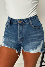 Hold'Em Close Mid Wash Stretch Frayed Cut Off Denim Shorts