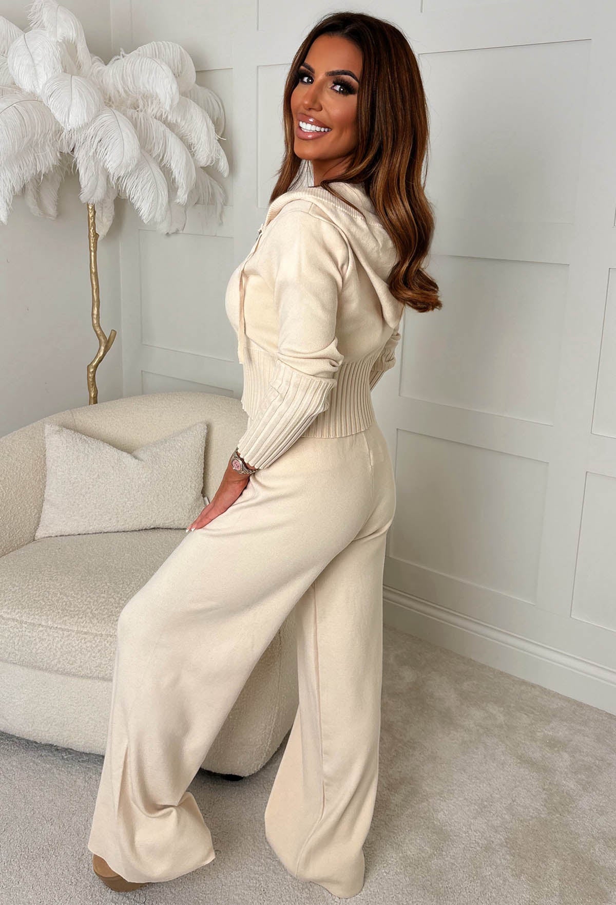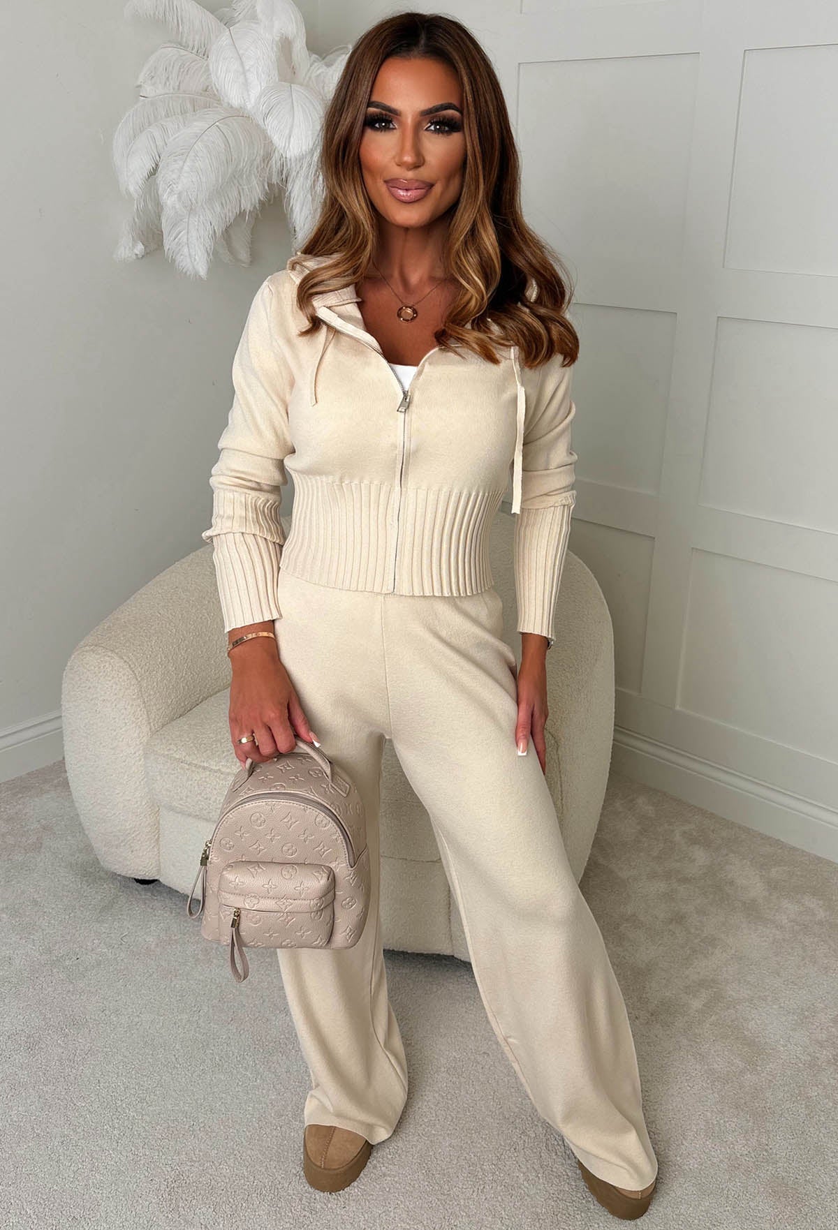 Get ready to cosy up in style with the Kassie Cream Rib Knit Zip Up Hoodie! Made with a soft knitted fabric, this hoodie features rib waist detail for a cinched, flattering fit. Whether you're snuggled up at home or layering up, this hoodie will keep you warm and on-trend. Wear on its own or pair with the matching trousers for the ultimate comfy-chic look!