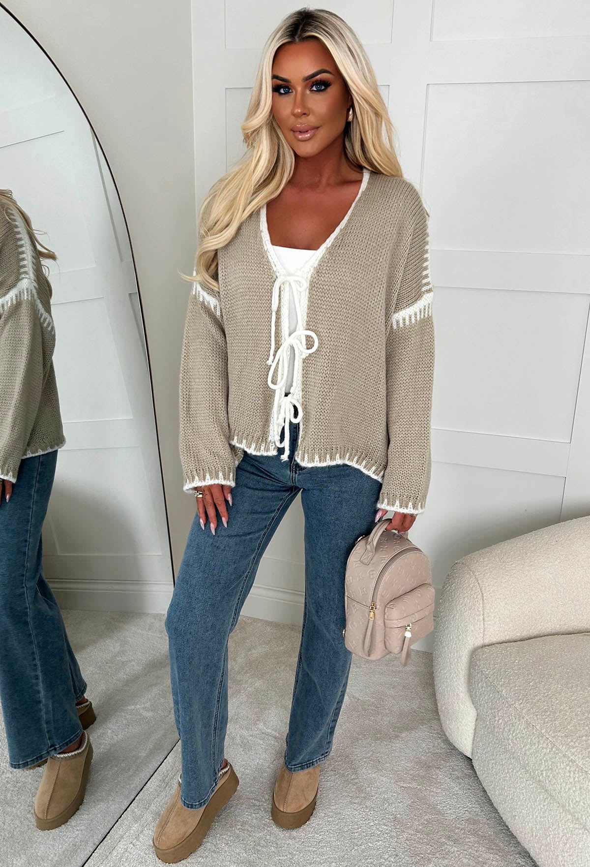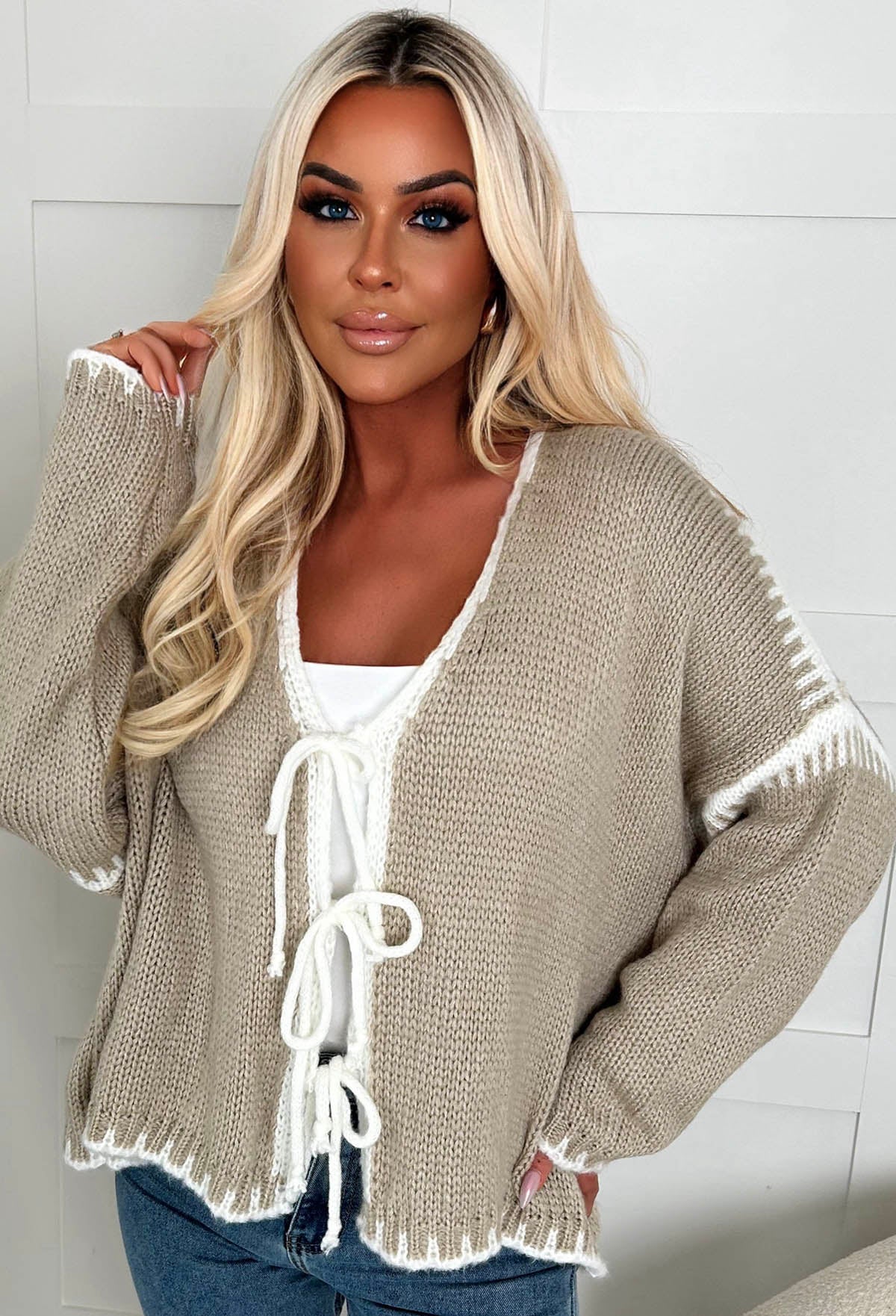 Kayleigh Beige Contrast Tie Knot Multiway Cardigan
