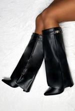 Keep It A Secret Black Faux Leather Fold Over Knee High Shark Boots