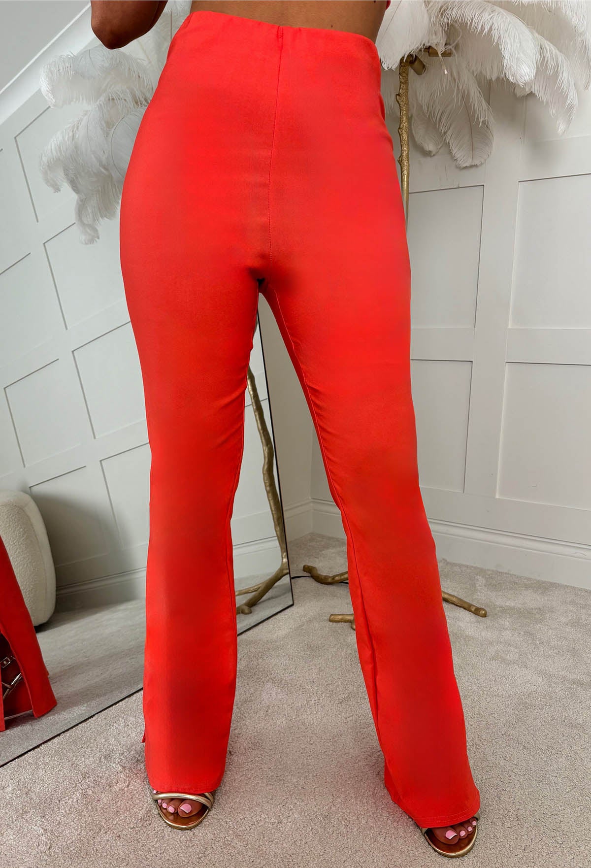 Love All Around Coral Bengaline Stretch Flared Trousers
