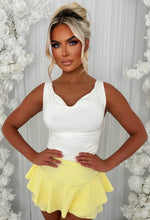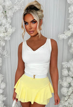 Get ready to add a touch of mischief to your wardrobe with the Misbehaving Lemon Double Layer Skort. Made with stretch fabric, this skort ensures maximum comfort while the double layer frill adds a playful touch to any outfit. Perfect for a fun concert or cute daytime look!
