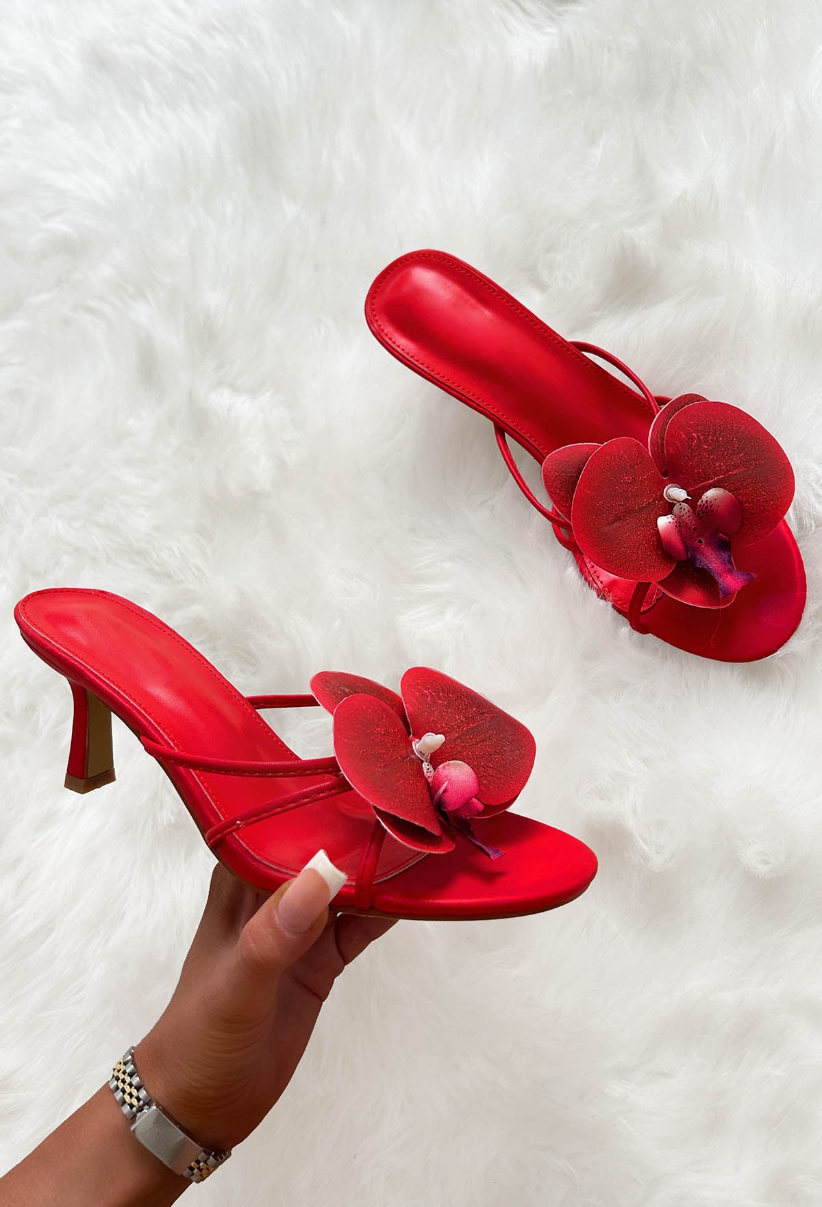 Step into style with our Pure Love Red Orchid Mules! These mule heels feature a mid height for maximum comfort without sacrificing on elegance. The orchid floral detail adds a unique touch, perfect for a special occasion!