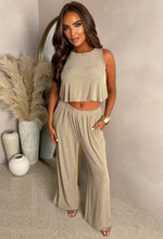 Regine Taupe Plisse Top And Trouser Co-Ord