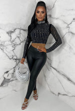 Starlit Black Diamond Gem Sheer Mesh Long Sleeve Top