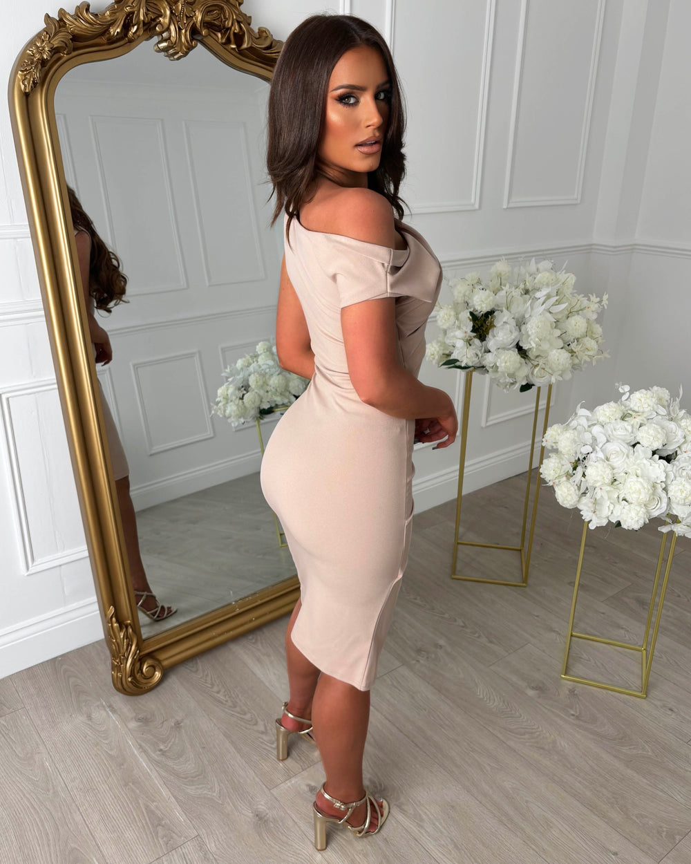 Stunning Sister Stone Off Shoulder Ruched Midi