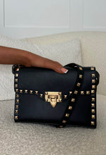 Rock your style with our Sunset Boulevard Black Studded Flap Bag! Made with faux leather and adorned with shiny gold studs, this bag adds an edgy touch to any outfit. Perfect for a night out or daily use, it's both stylish and practical. Upgrade your accessory game now!