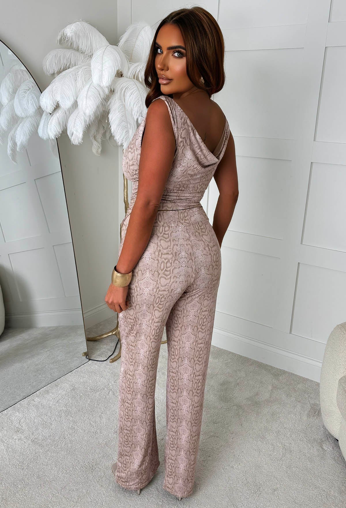 Sweetest Soul Beige Snake Print Slinky Cowl Neck Top