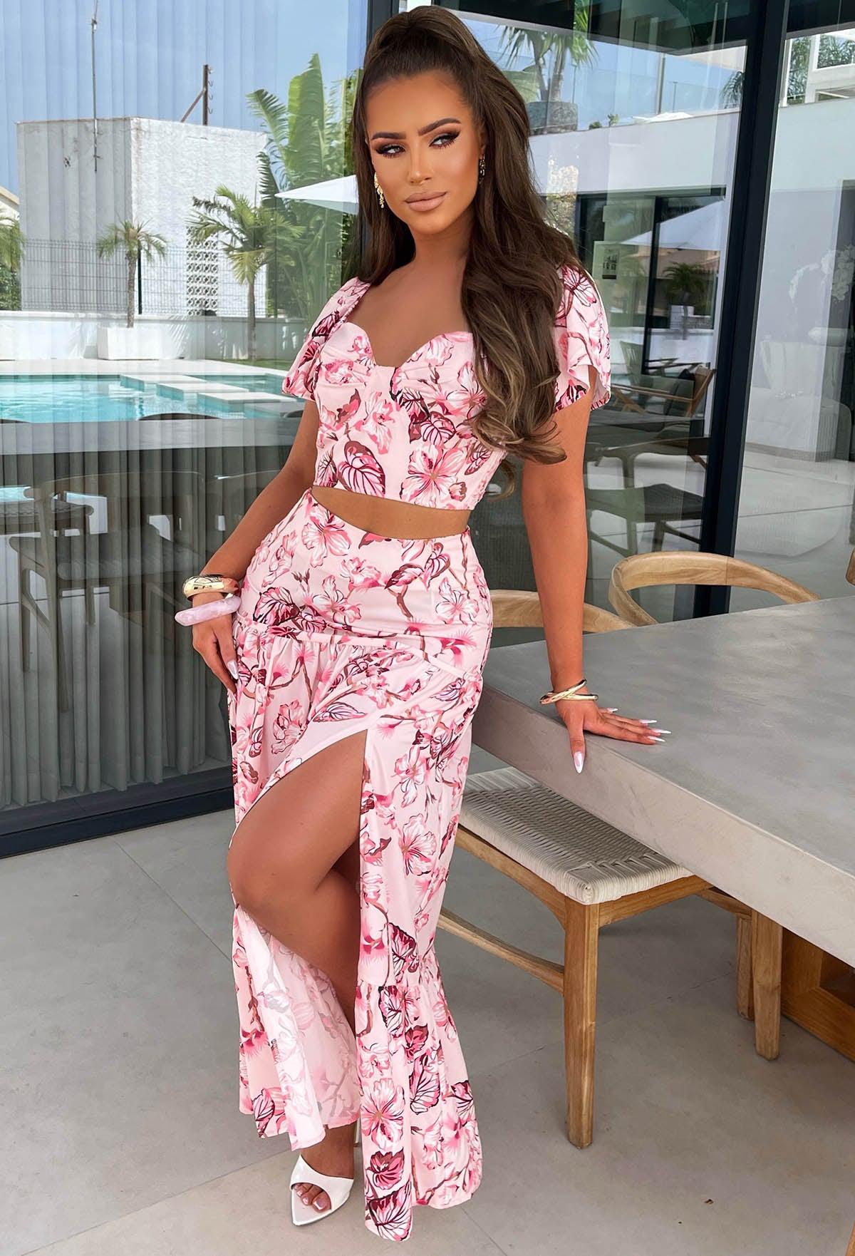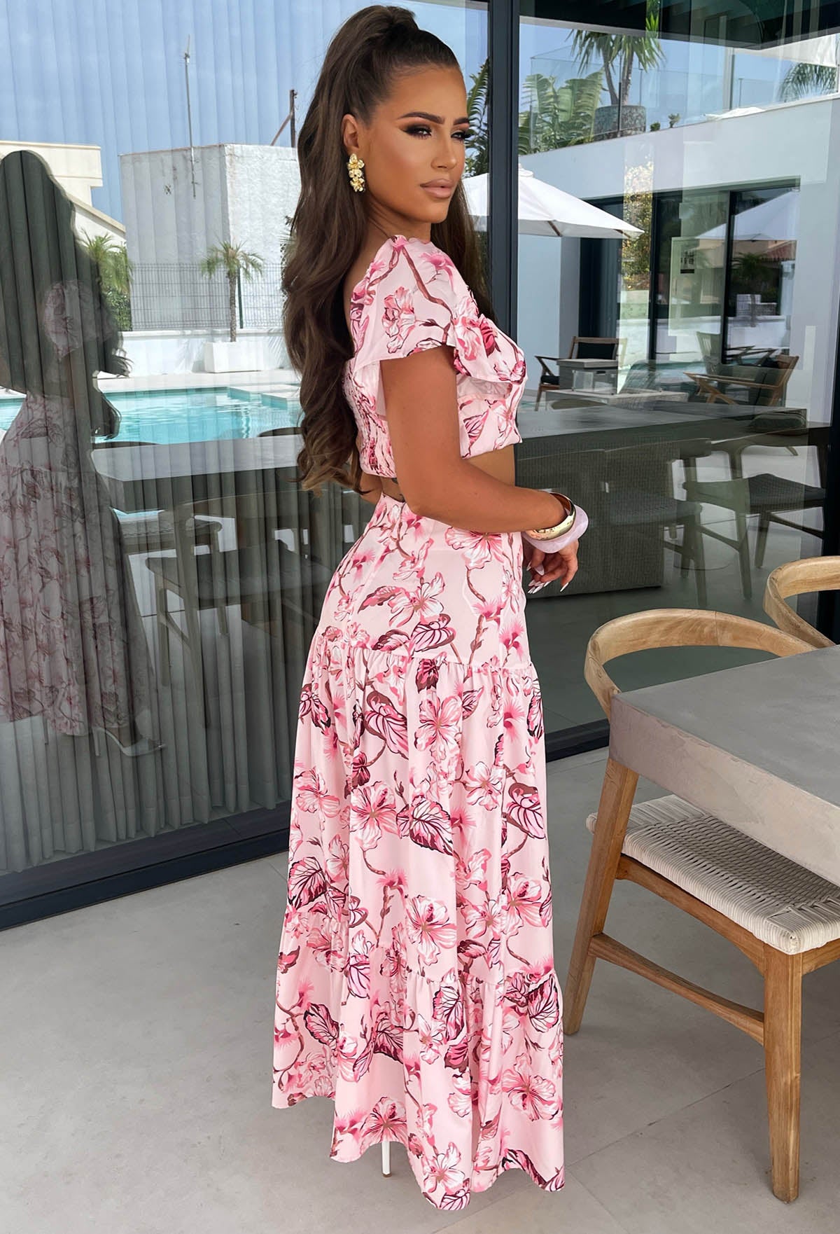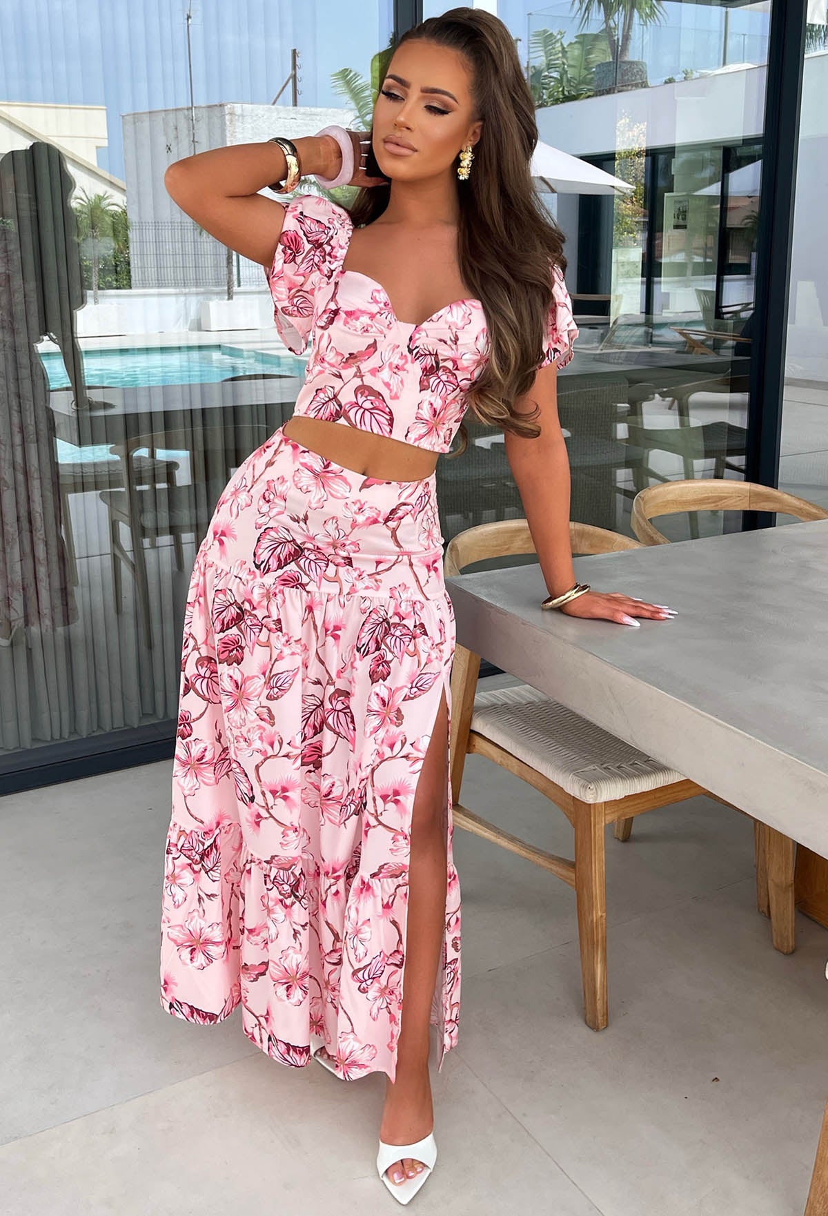 Tan Me Later Pink Floral Top & Skirt Co-ord Set