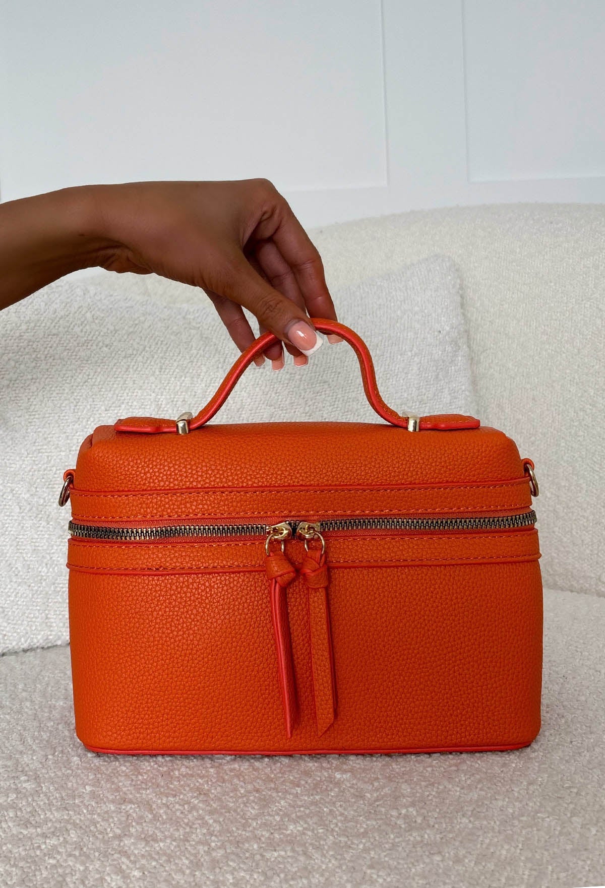 Get ready to slay with the Xoxo Chic Orange Top Handle Vanity Bag. With its convenient top handle and detachable crossbody strap, this bag is both stylish and functional. The double zip fastening adds extra security, making it the perfect bag for any adventure. Upgrade your accessory game today!